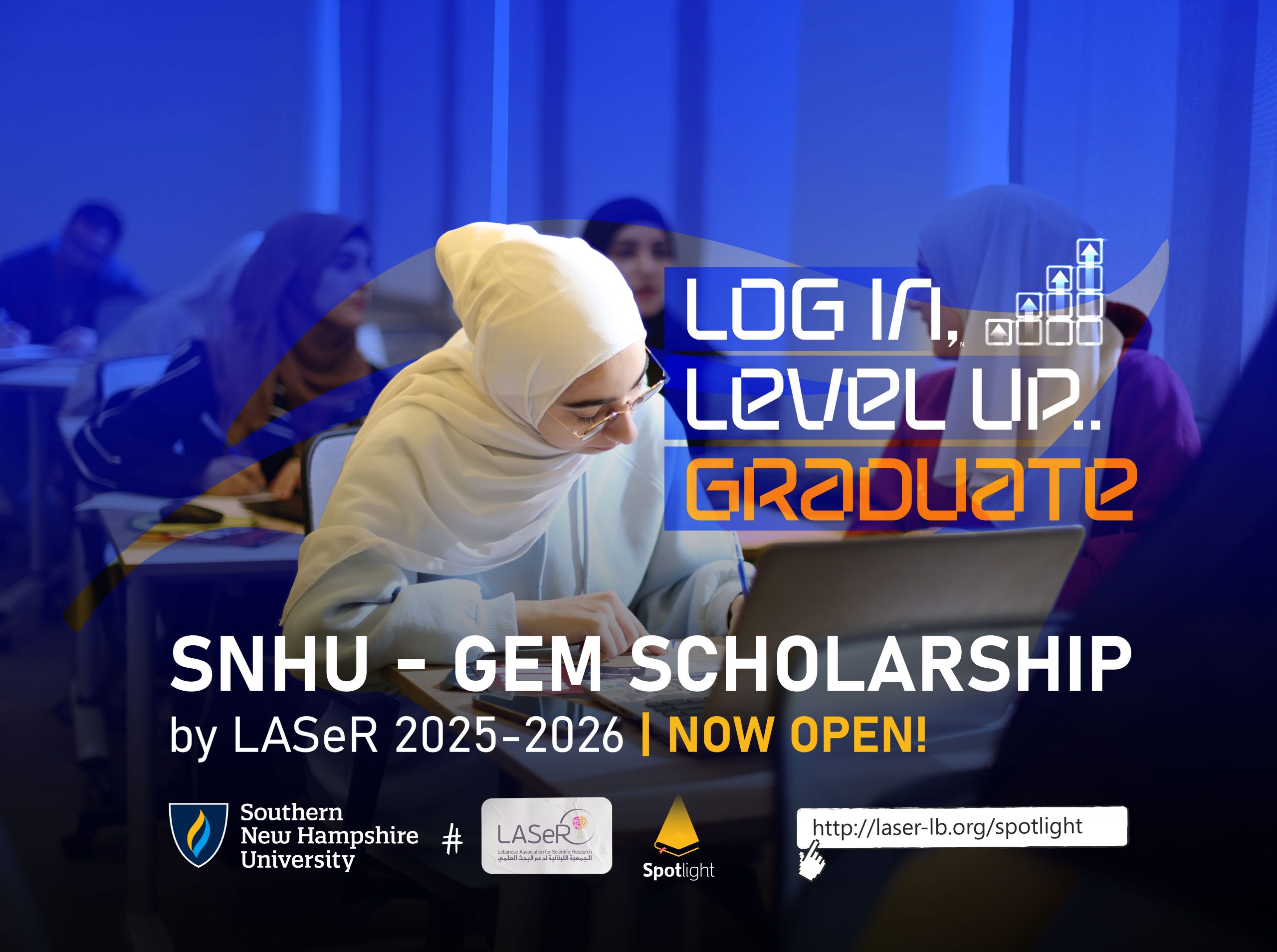 Spotlight is a blended learning university scholarship program where students study on-site with Southern New Hampshire University (SNHU), a US-based University, and pursue their bachelor’s degree while being in Lebanon. We aim to provide access to higher education programs including Associate’s and Bachelor’s degrees to refugees and vulnerable learners of any nationality accessing programs with a specialization in Business, Communication, and Health Care Management through LASeR.